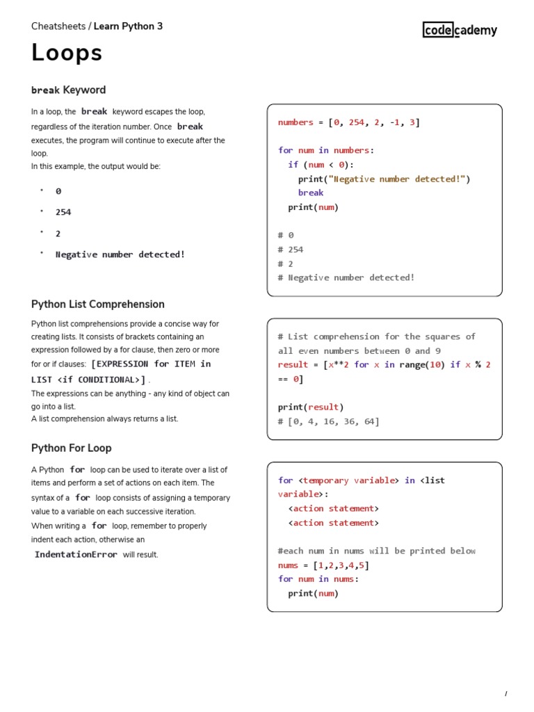 So to help you focus more on deeper understanding we created Codecademy Cheat Sheets. It also provides techniques for handling common procedures. Up to 3 cash back Learn Java_ Loops Cheatsheet _ Codecademy - Free download as PDF File pdf Text File txt or read online for free.